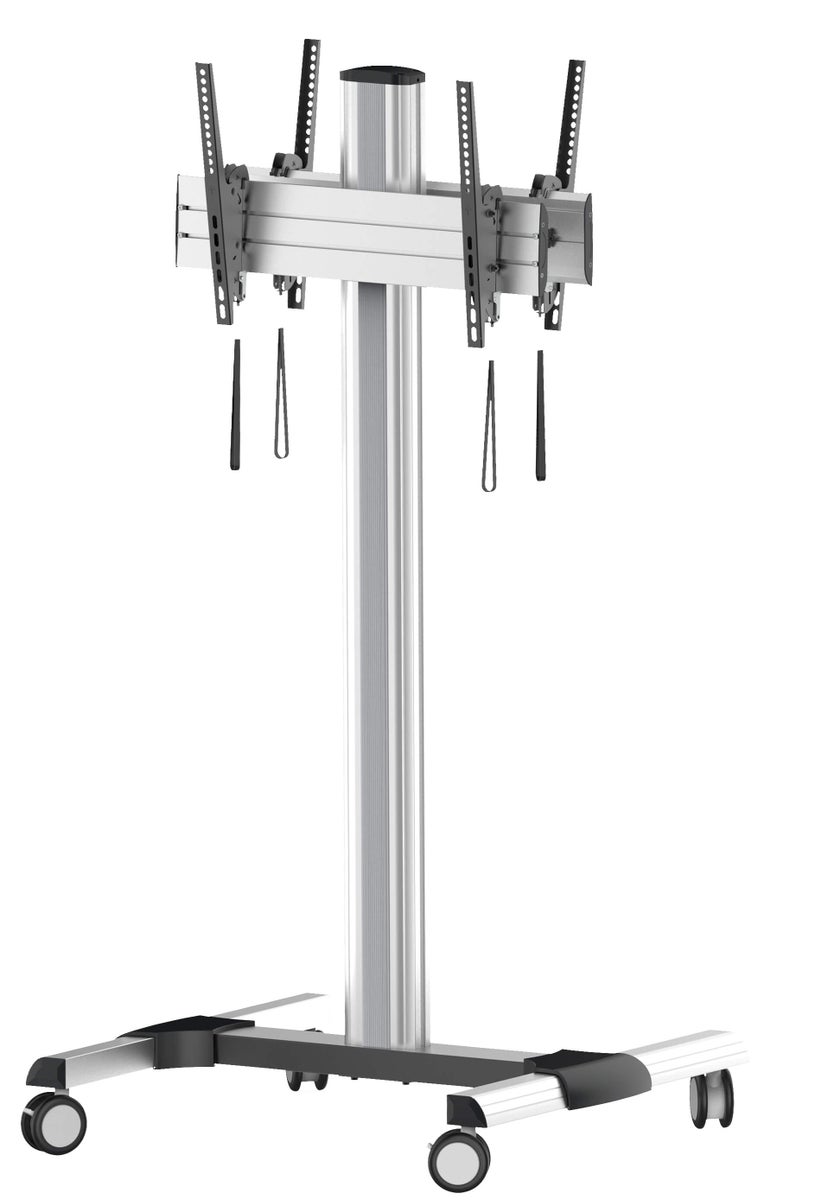 My Wall lattiajalusta kahdelle näytölle 37–70" on tukeva ja tyylikäs ratkaisu kahden näytön esittämiseen esimerkiksi neuvottelutiloissa, messuilla, opetuskäytössä tai myymäläympäristössä. Kestävä alumiinirakenne ja moderni hopeanvärinen viimeistely takaavat ammattimaisen ulkonäön.