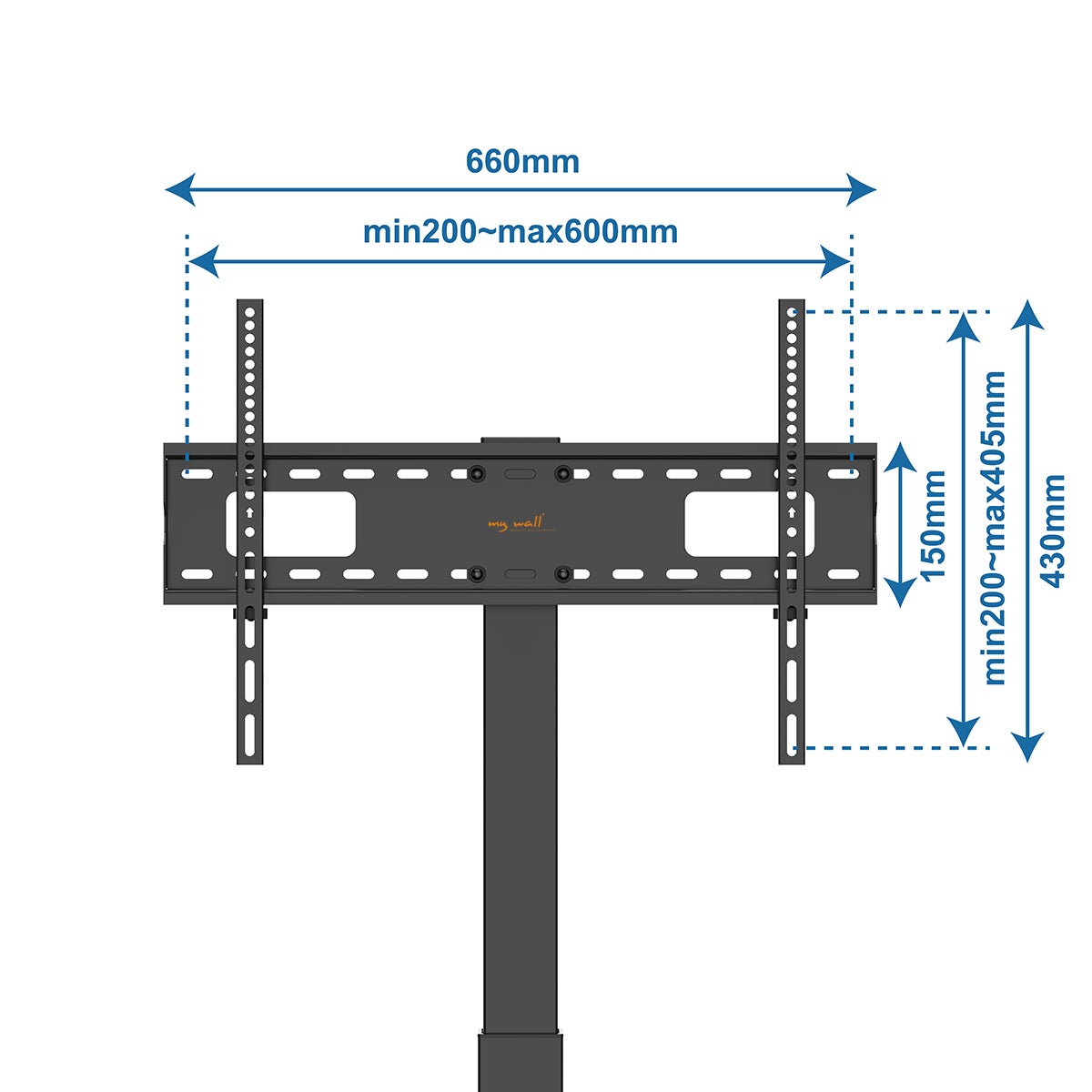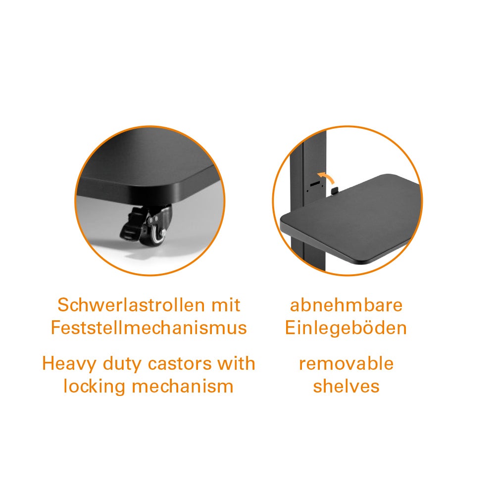 My Wall TV-jalusta 37 - 75" koon televisioiden kiinnikkeeksi. TV-jalustassa on pyörät, joten voit siirtää sitä kätevästi paikasta toiseen. Pyörissä lukitusmekanismit ja telineen kääntyvyys on + / - 35 °. Yhteensopiva 200x200 - 600x400mm VESA-standardin kokojen kanssa. Tuotteessa mukana asennustarvikkeet ja käyttöohjeet.